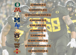 #6 OREGON (8-1) vs. Arizona– won 34-6