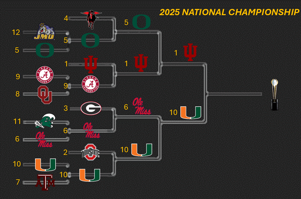 Indiana was successful last season, but they felt there was more to do. I think the Big Ten competition and postseason feel gave Cignetti, the athletic director, and the front office an idea on how to build on their success. Cignetti has experienced players and James Madison players back, but it wasn’t enough. They went after a few key transfers, including Fernando Mendoza and Roman Hemby before going on an unbelievable run. However, they were challenged from start to finish in the regular season, including the Big Ten title. They overcame those adversities, conquered them, and now look like the best team. They proved it thus far after slamming the door shut on Alabama’s hindquarters and cooking the Ducks in the first 11 seconds of the game. They might be a road team in Miami, but they’re still favored and Fernando Mendoza gets to show his prowess in his home state.
